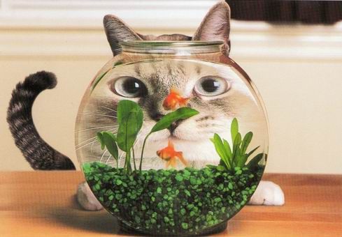 Funny cat and fishes